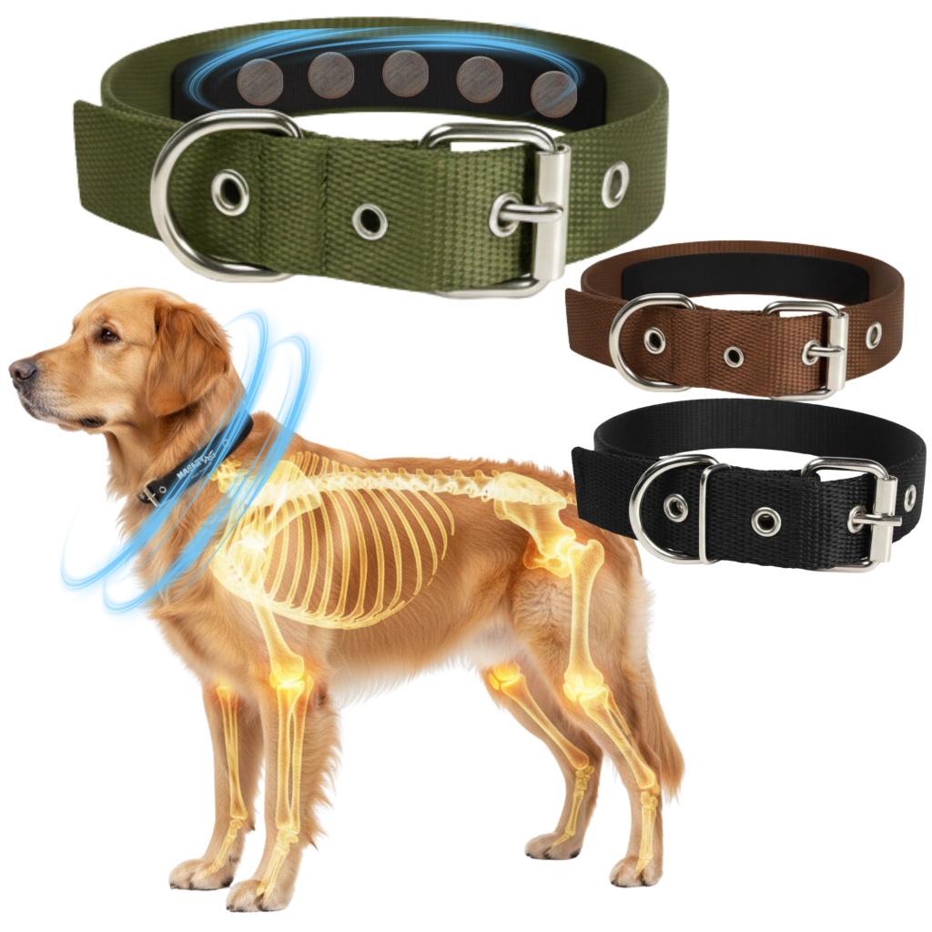 Nuestros collares magnéticos no son simples collares: incorporan 5 potentes imanes de 2400 Gauss cada uno, diseñados para aportar comodidad y favorecer el bienestar general de tu perro.